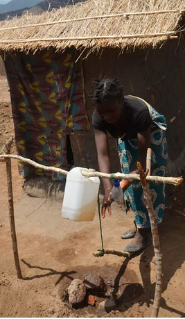 'Tippy tap', avoids touching the water container through a food-pedal contraption.