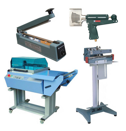 Sealers are used to close plastic packaging. They come in different types and sizes depending on the packaging material and shape.