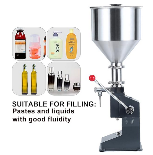 There are four different bottling technologies, piston, timed flow, metered flow, and overflow. Peanut butter is best handled by a piston filler that keeps the product warm and therefore at a lower viscosity, all driven by a strong pneumatic cylinder that can fill different quantities of product into a glass or plastic container. Passionfruit juice, on the other hand can be gravity fed into an overflow filler. Overflow filling machines are used for liquids that need to be filled into bottles at the same visual level. Other bottling equipment (e.g. for oils) are timed flow and metered flow bottling machines.